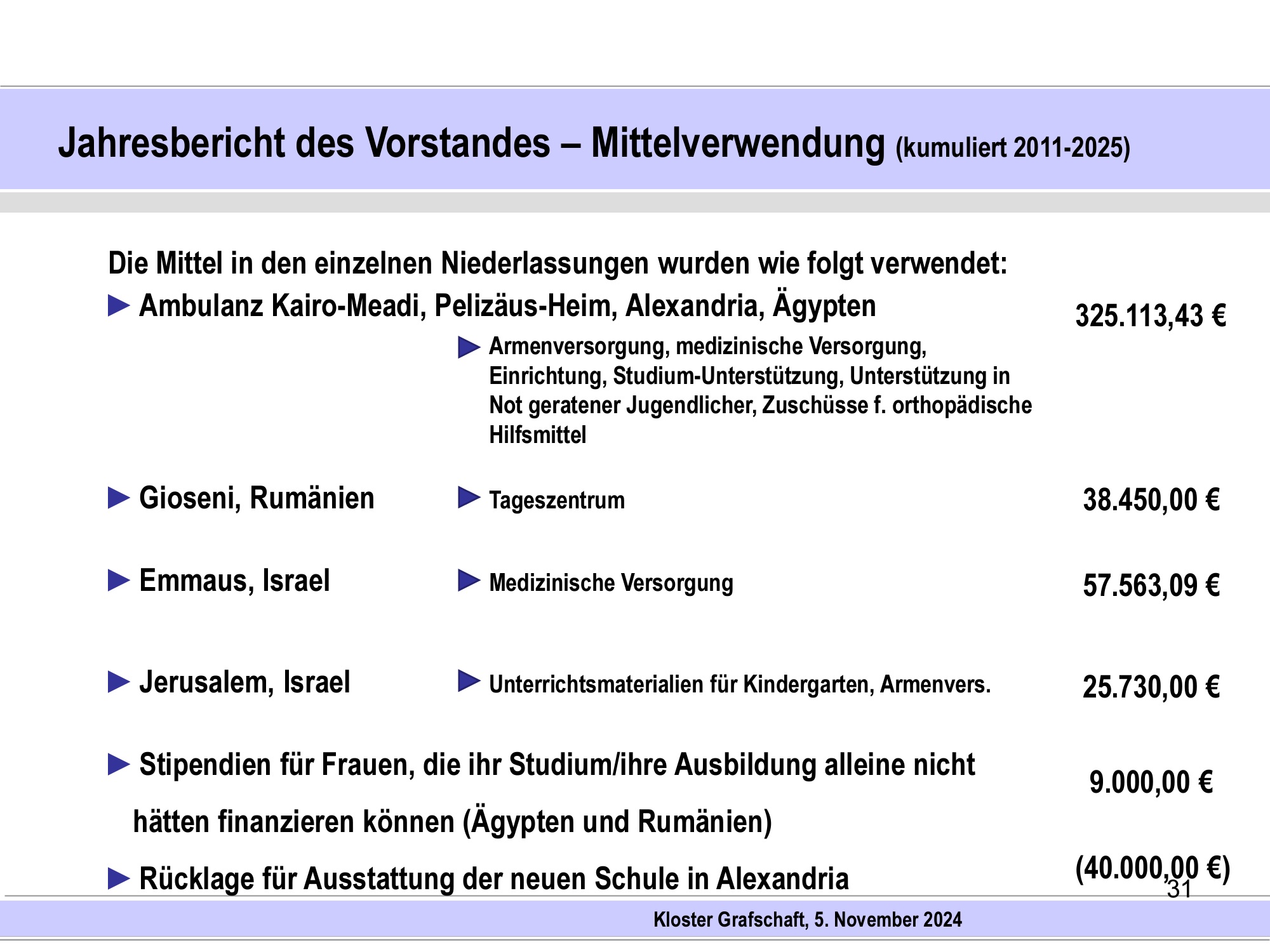 Der Freundeskreis unterstützt in vielfältiger Weise die Aufgaben und Projekte der barmherzigen Schwestern vom hl. Karl Borromäus in Ägypten, Israel und Rumänien.
